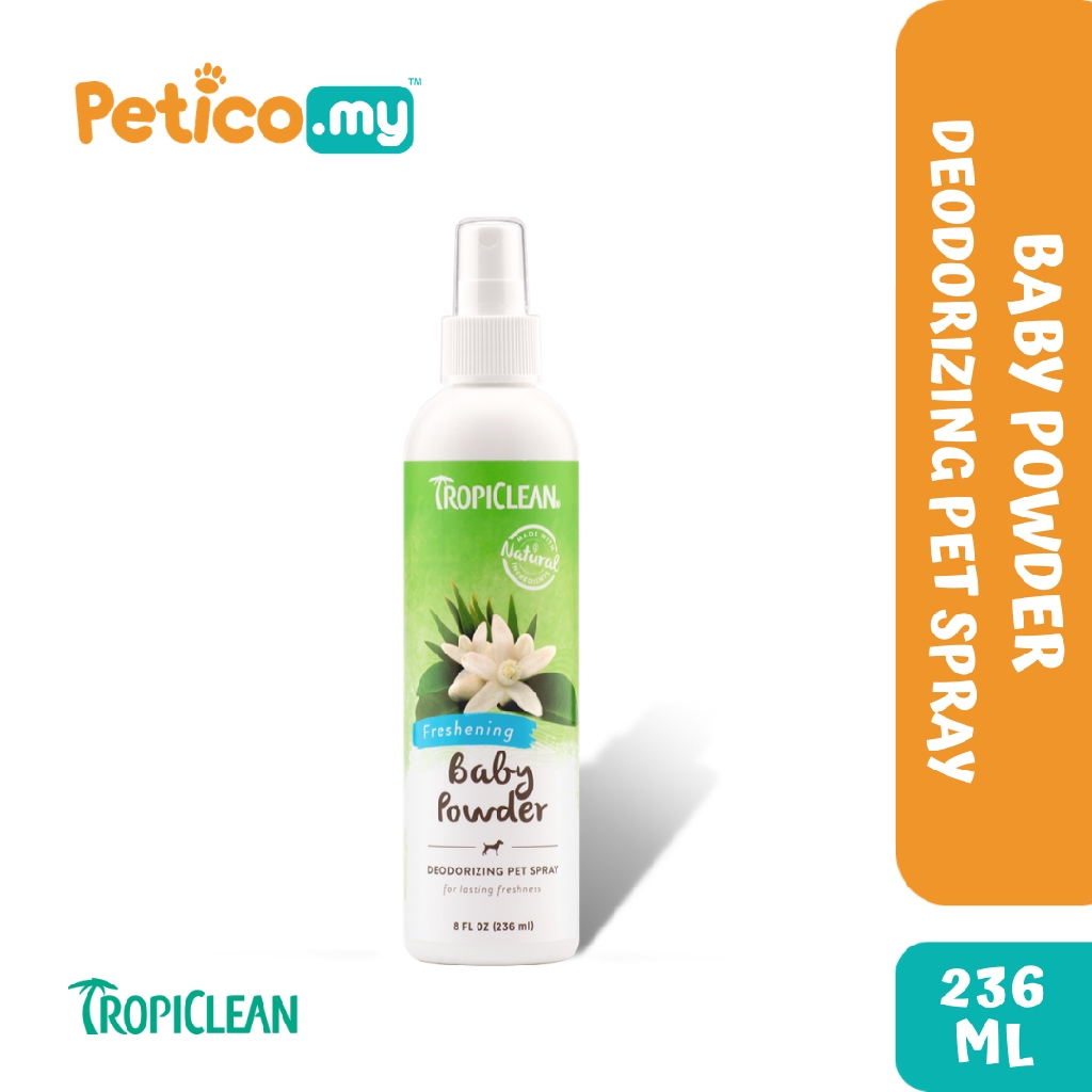 Baby powder spray for dogs. Our range of sprays do not leave a wet or sticky residue on the coat after spraying. TropiClean Baby Powder Pet Spray adds extra freshness after bathing or between baths. You should already notice their.