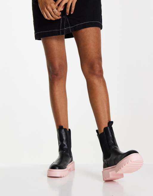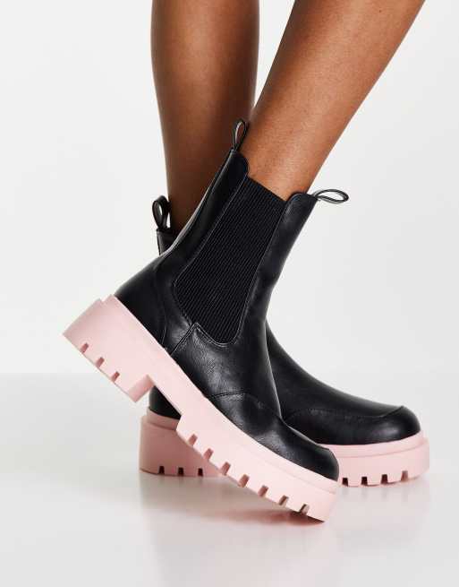 Shoespie offers Black Heels Pink Sole. Stradivarius lace up flat ankle boot in black. Mia Jonna Lug Sole Chelsea Boot 7995.